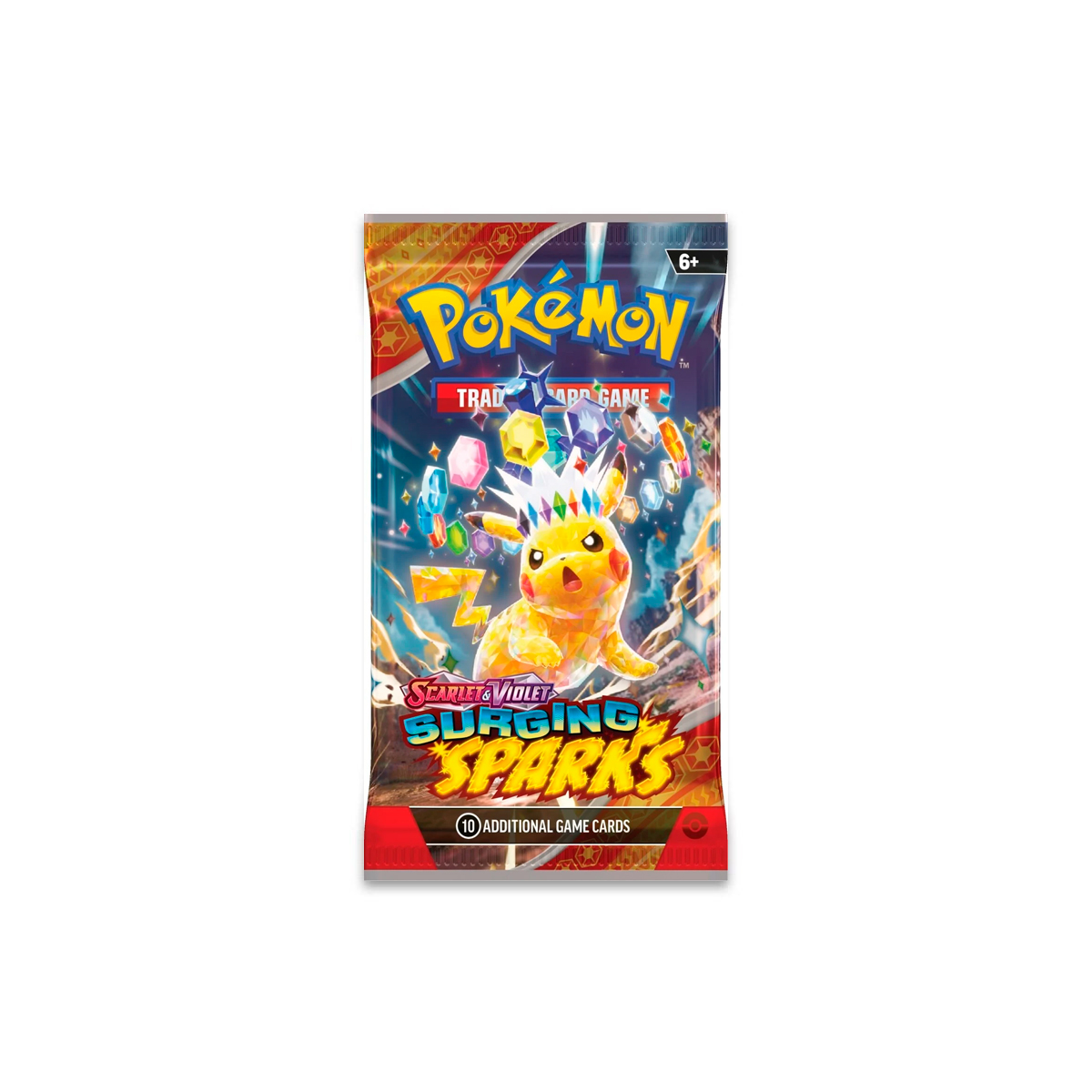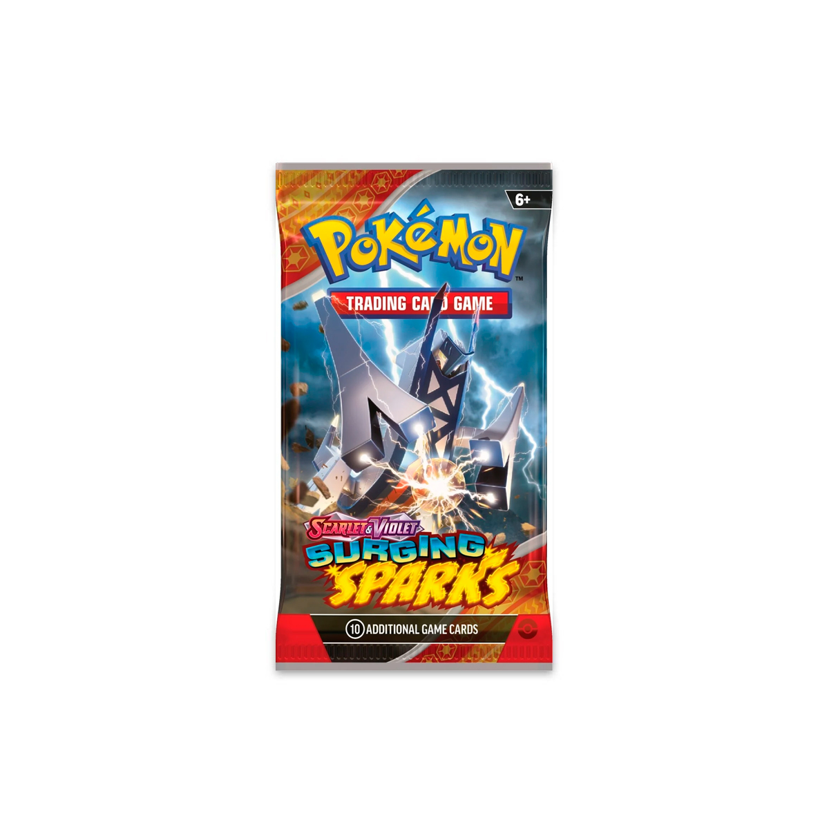 Terawatts of electricity crash down from the sky in a tropical paradise, setting the stage for the supercharged Pikachu ex! With the power of a Stellar Tera Pokémon ex, it lights up the shoreline, revealing a parade of dragon Pokémon led by the towering Alolan Exeggutor ex! Archaludon ex and Latias ex round out the horde, while new ACE SPEC cards and more new Pokémon ex bring surprises of their own. Currents crackle and dragons roar in the Pokémon TCG: Scarlet & Violet—Surging Sparks expansion!